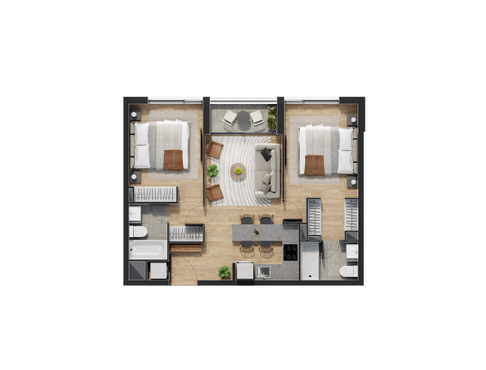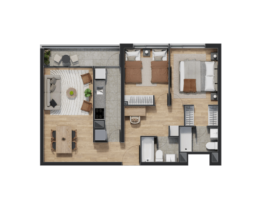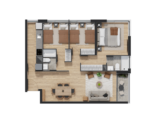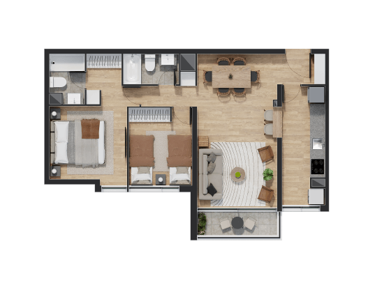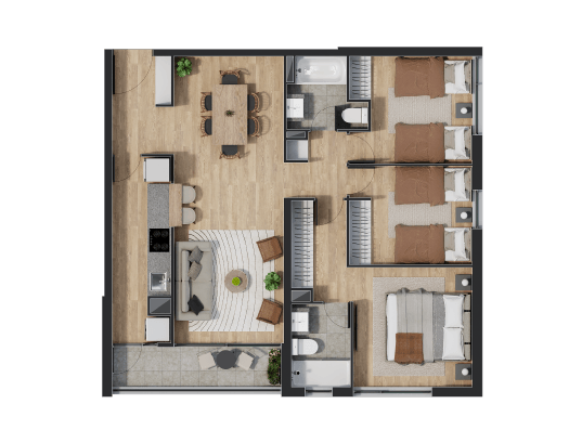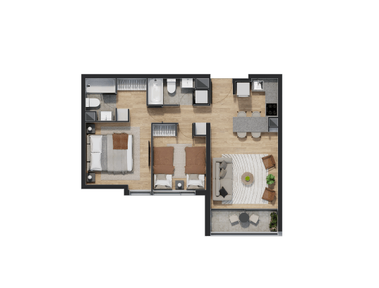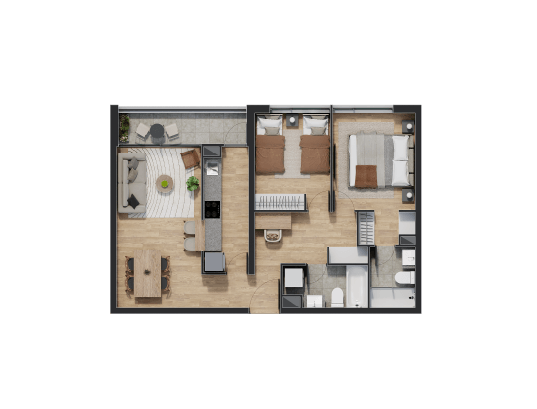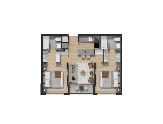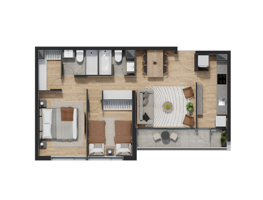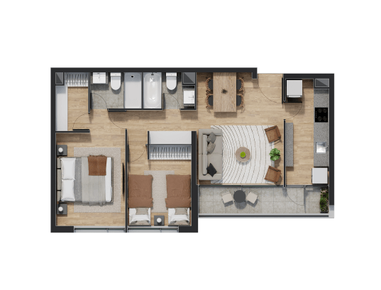 Disfruta de espacios que van desde 54 hasta 93 metros cuadrados en un ambiente equipado para disfrutar con la familia y amigos.